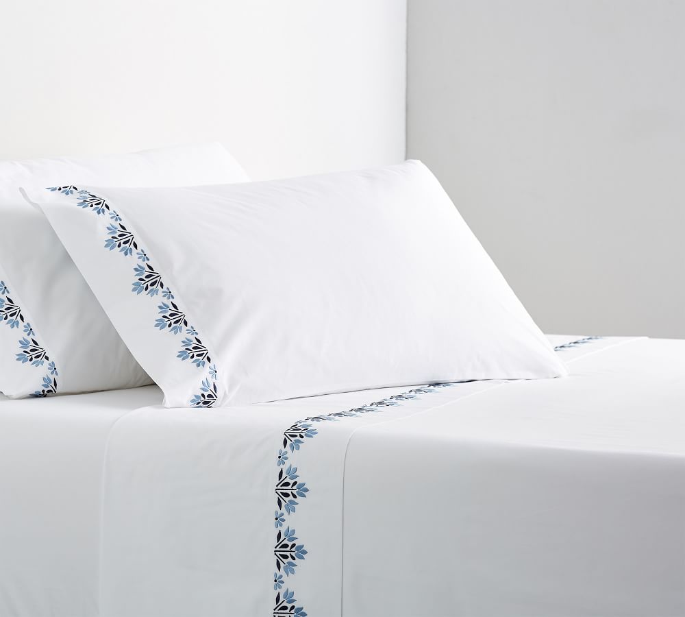 | Blossom Embroidered Organic Percale Sheet Set, Cool Multi, Twin XL | $159 | $0 |