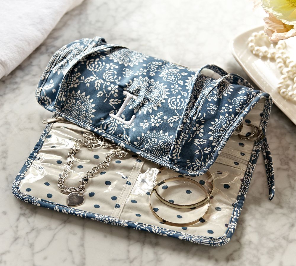 Tailored with our Calista print on the outside, and polka dots inside, this roll is a stylish way to keep jewelry safe during travel.