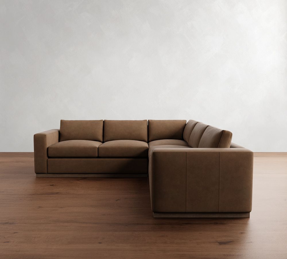 Carmel Wide Arm Leather Wood Base 3-Piece L-Shaped Sectional (113")