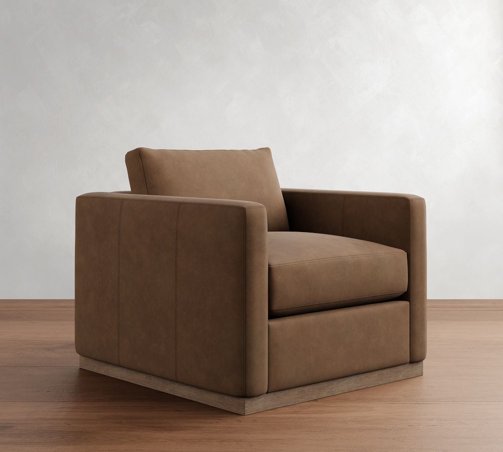 Carmel Slim Arm Leather Wood Base Chair