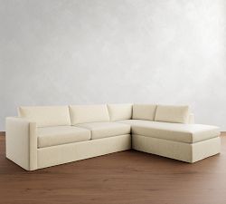 Left Arm Sectional with Sofa, shown in Performance Heathered Basketweave, Ivory