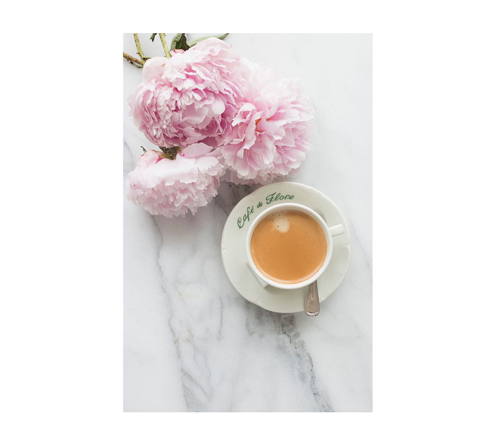 Coffee and Pink Peonies in Paris by Rebecca Plotnick
