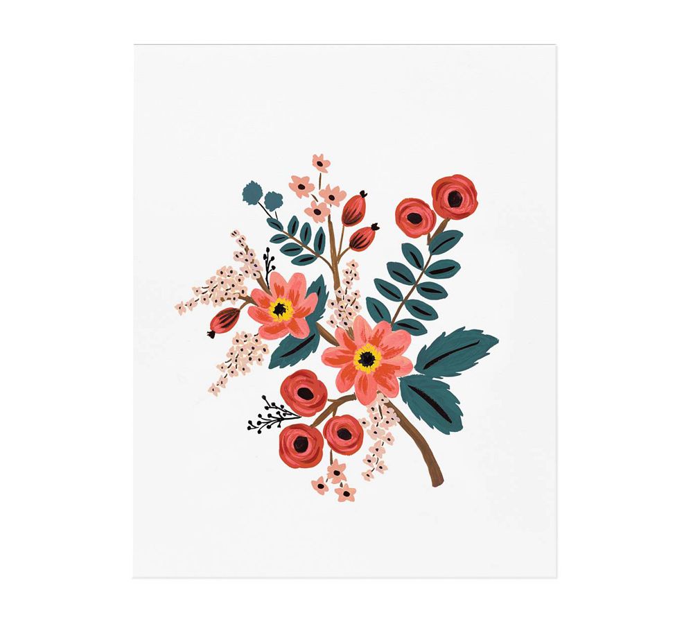It’s always springtime any time of year with these colorful blooms in a room. The artwork is reproduced on archival stock from a hand-painted gouache illustration created by Rifle Paper Co