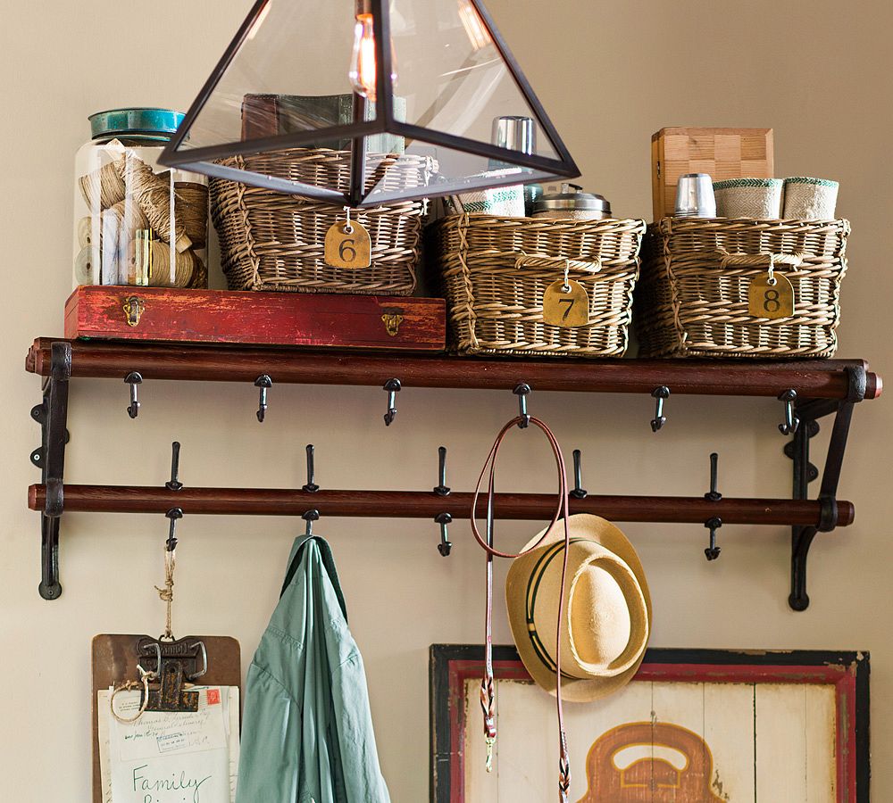 Designed after a coat rack we spotted in Paris, our space-saving entryway piece features a broad shelf for storing essentials or displaying decorative items, and lots of hooks below for hanging coats, scarves and bags.