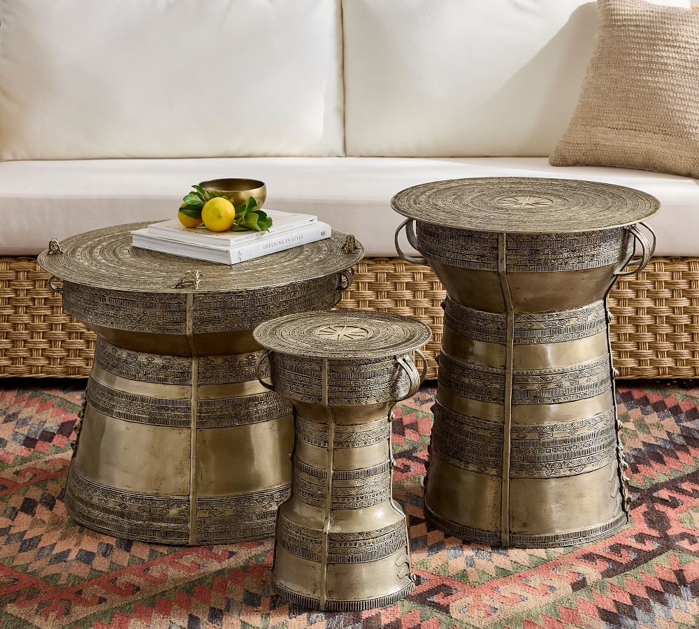 | Frog Drum Metal Round 25" Outdoor Side Table, Wide, Aged Brass |