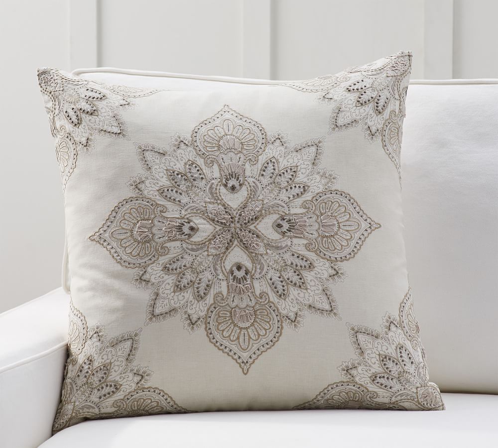 | Holly Embroiderd Pillow Cover, 24", Ivory Multi | No Longer Available |
