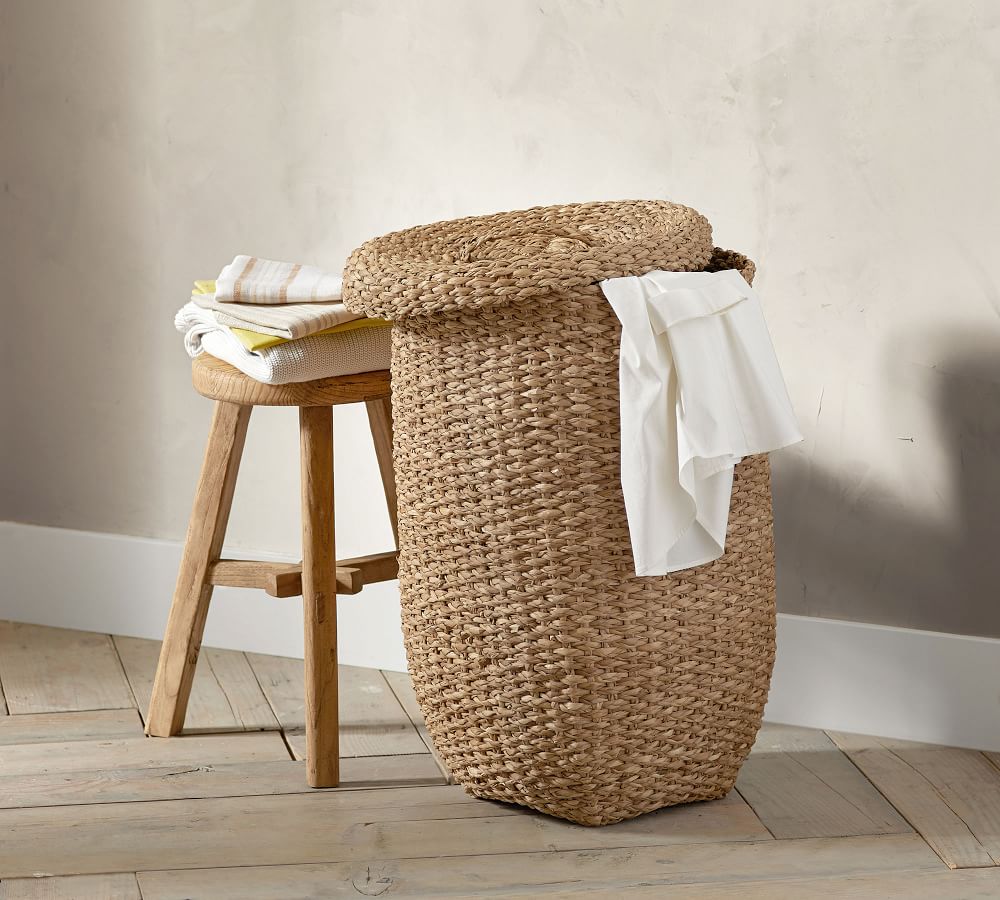 Handwoven of natural fibers in a honey finish, our Ibiza Basket Collection brings a warm, casual look to home organization. From stowing pillows and throws to keys and remotes, Ibiza has a stylish size solution for every room. This tall tote basket is ideal for larger items, and a lid keeps it all neatly out of sight.