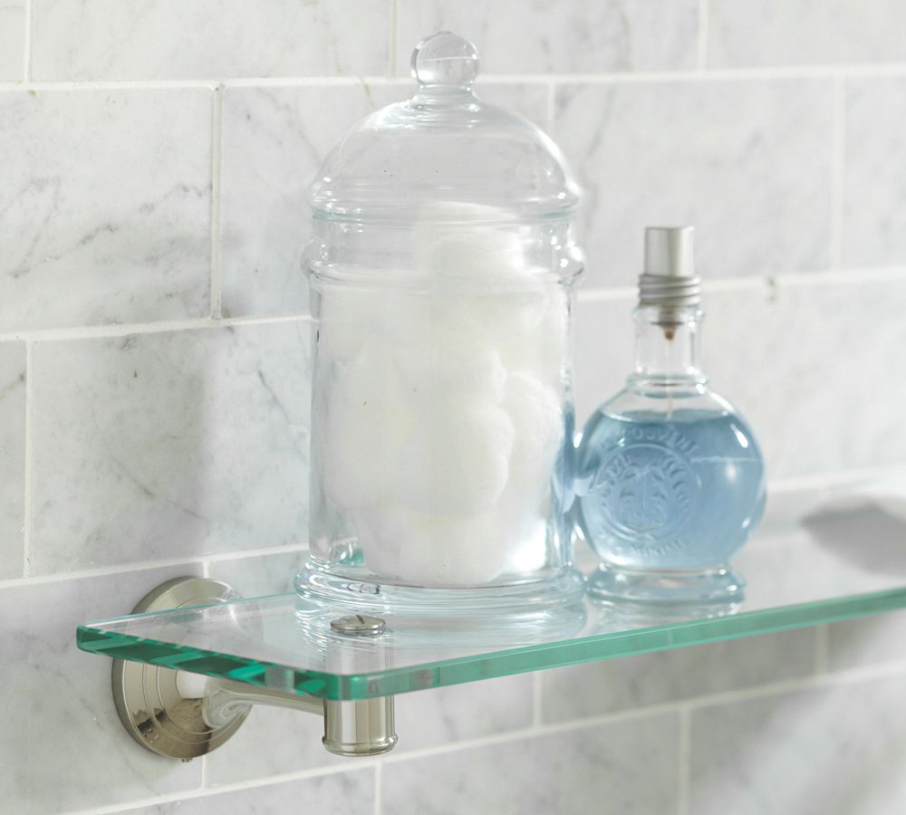 - Shelf is crafted of tempered glass; a safety glass that is manufactured through a process of extreme heating followed by rapid cooling, making it harder than normal glass and resistant to breakage.