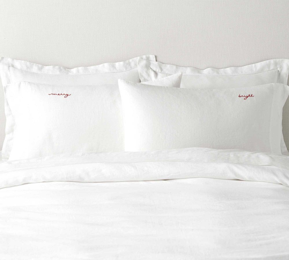 | Merry & Bright Embroidered Belgian Flax Linen Pillowcases, White/Red, Standard, Set of 2 | No Longer Available |
