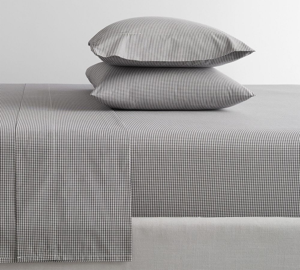 | Micro Gingham Organic Percale Sheet Set, Charcoal, Cal King | No Longer Available |