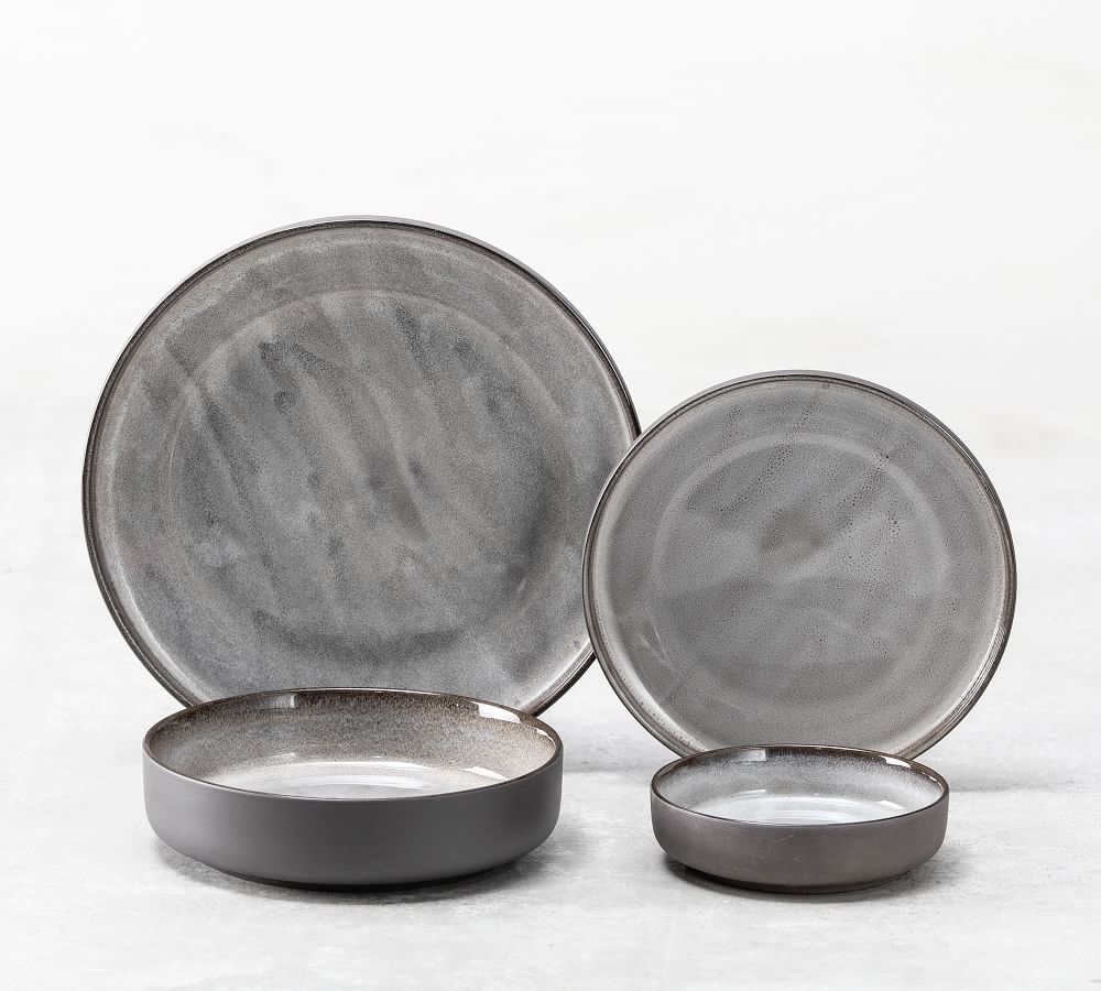 - Dinnerware set of 16 includes: 4 serving bowls, 4 pasta bowls, 4 dinner plates, and 4 salad plates.