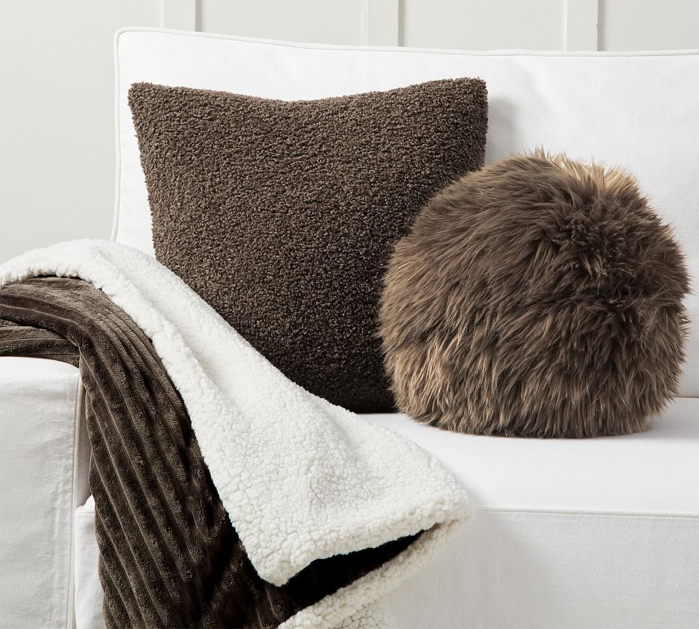 A mix of textures and a monochrome palette in earthy mushroom form the perfect foundation for layering on the luxe. Our faux fur sphere adds a touch of playfulness when paired with our plush teddy faux fur pillow cover. Complete the look with our ridged throw that reverses to supersoft sherpa, perfect for chilly weather.