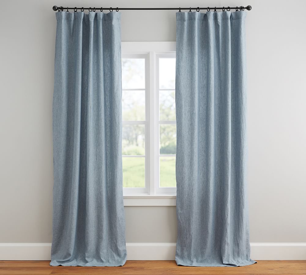 Open Box: Custom Belgian Flax Linen Curtain - Blue Chambray