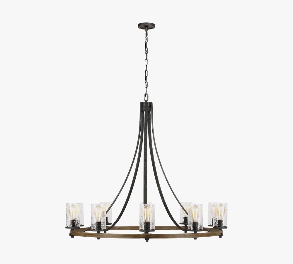 | Open Box: Steffens Iron & Textured Glass Chandelier, Small (24" Diam) - Weathered Oak | No Longer Available |