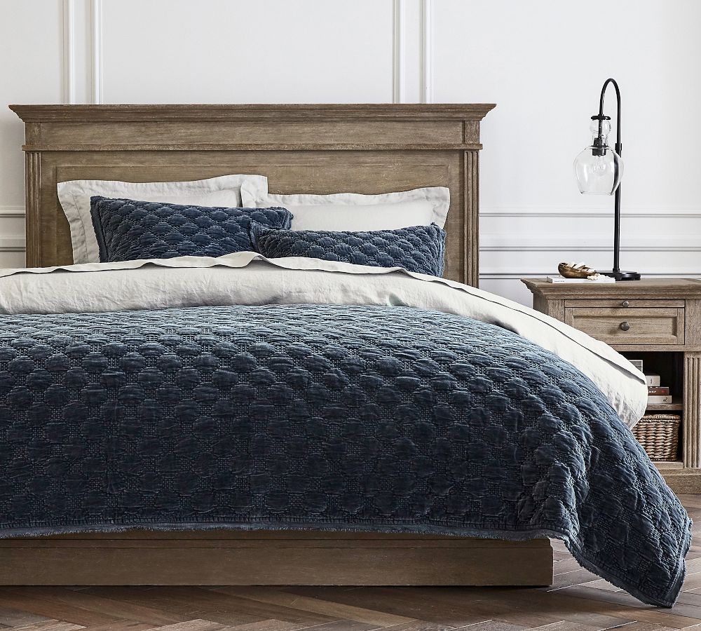With a lattice-quilted design brought to life on luxe cotton, our velvet bedding brings heirloom style to modern-day homes. The contrasting stitch work brings the rich texture to life, extending depth and dimension to all four corners.