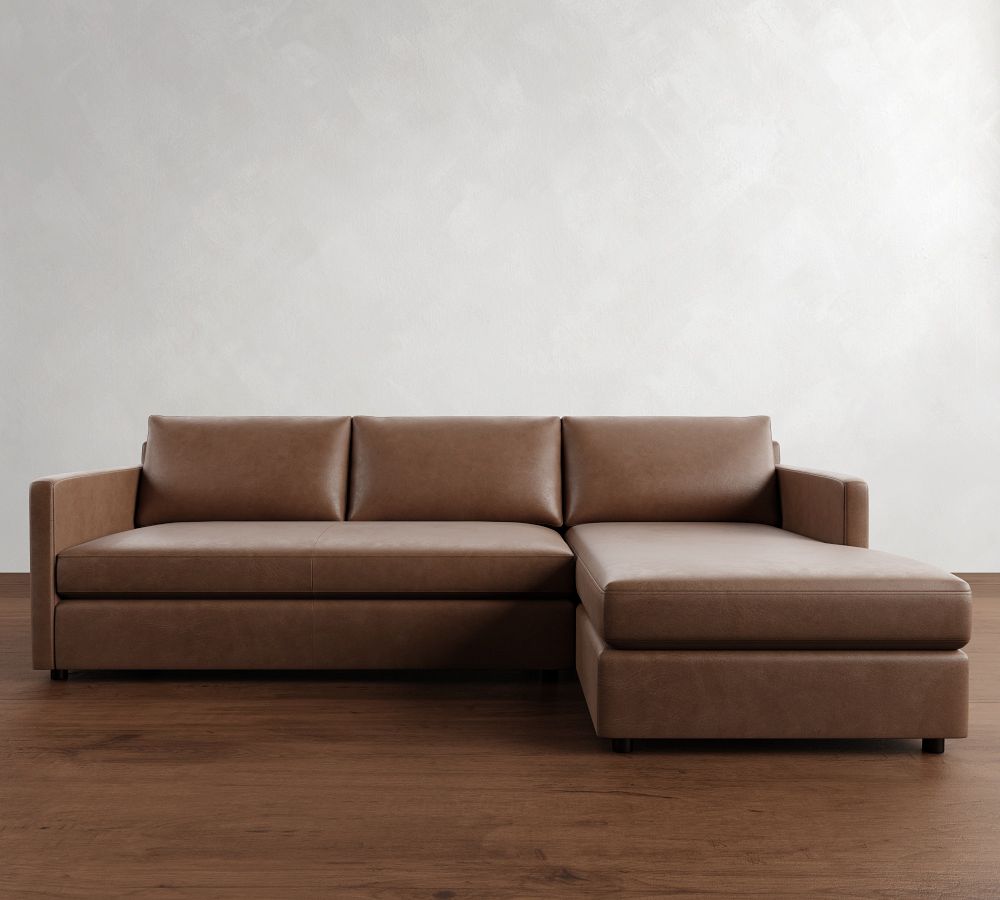 Pacifica Slim Arm Leather Chaise Sectional (100")