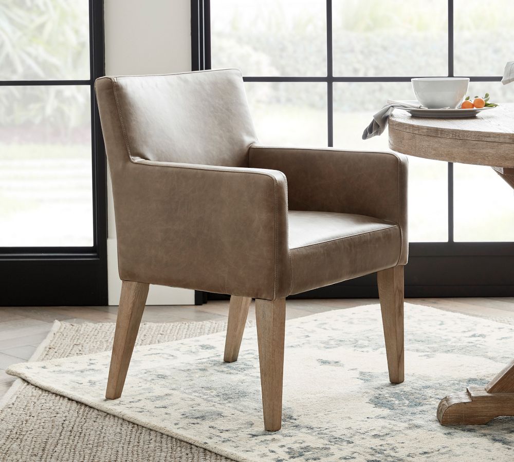 - Top-grain leather, aniline-dyed. Leather will lighten and soften with both use and time and develop a rich patina.