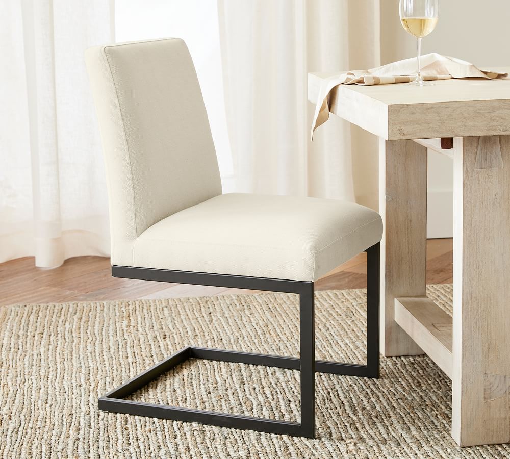 Classic Upholstered Metal Cantilever Dining Chair