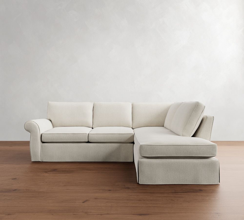 Pearce Roll Arm Slipcovered Return Bumper Sectional (114"–144")