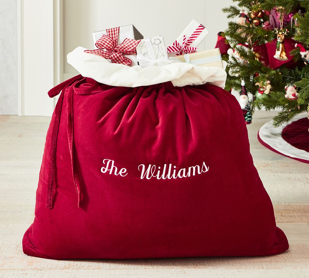 | Personalized Velvet Santa Bag, Red & Ivory | No Longer Available |