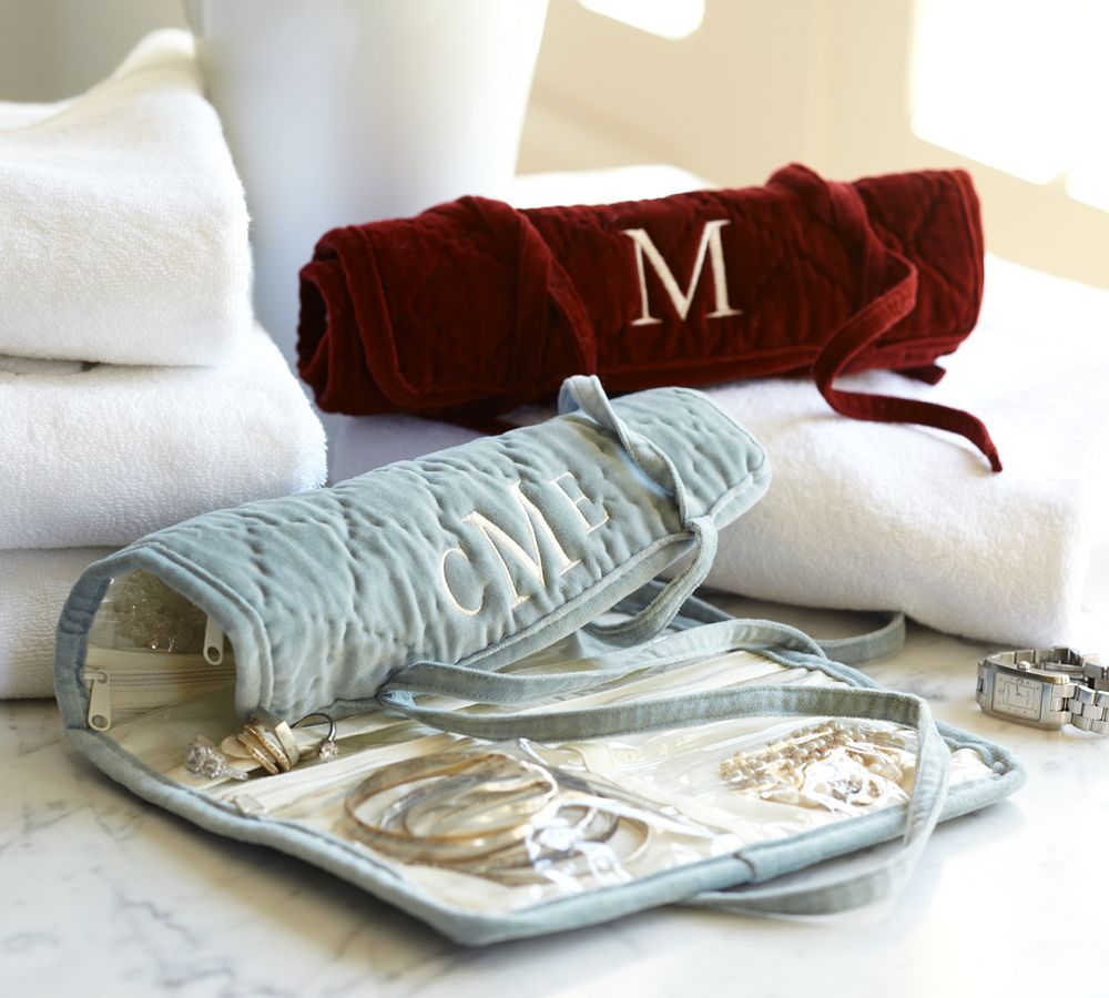 Wrap valuables and travel needs inside our jewelry roll. Its soft cotton velvet exteriors are diamond quilted by hand for a plush feel.