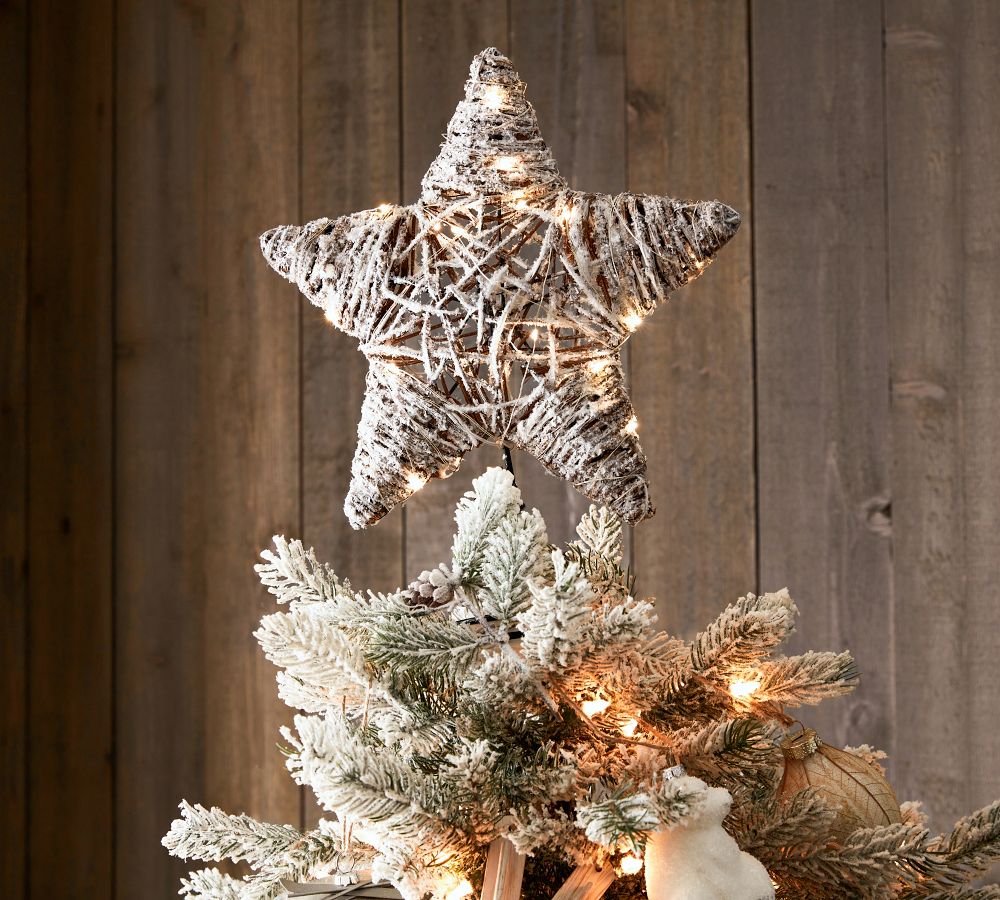 Light Up Snowy Star Handcrafted Rattan Tree Topper