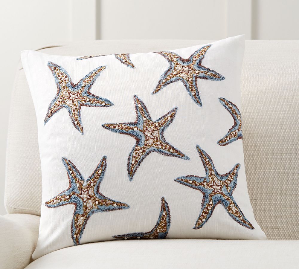 | Starfish Embroidered Pillow Cover, 18", Neutral Multi | No Longer Available |