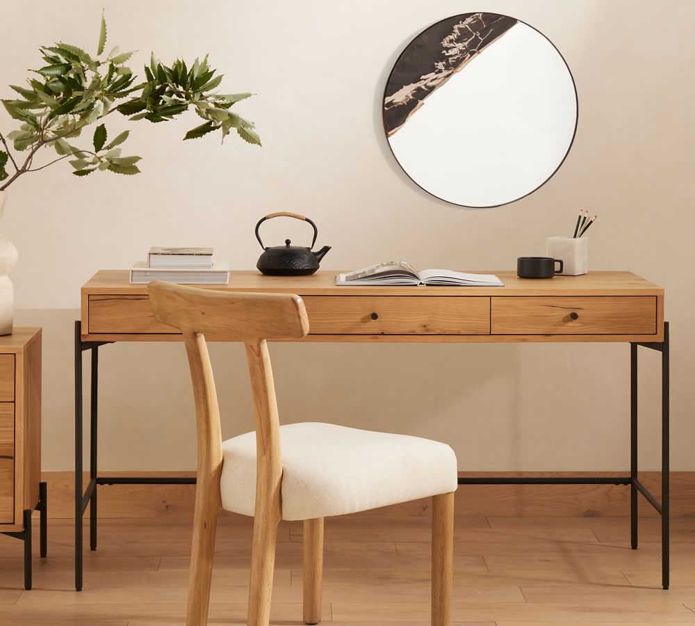 Sumner 61.5" Writing Desk with Drawers, Light Oak & Gunmetal | No Longer Available |