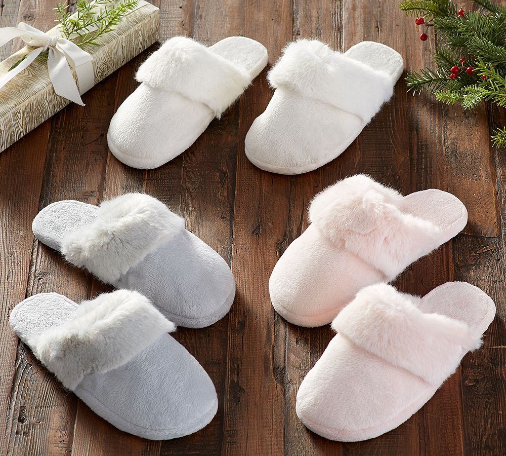 | Tonal Colored Fur Slippers, Gray, Large | No Longer Available |