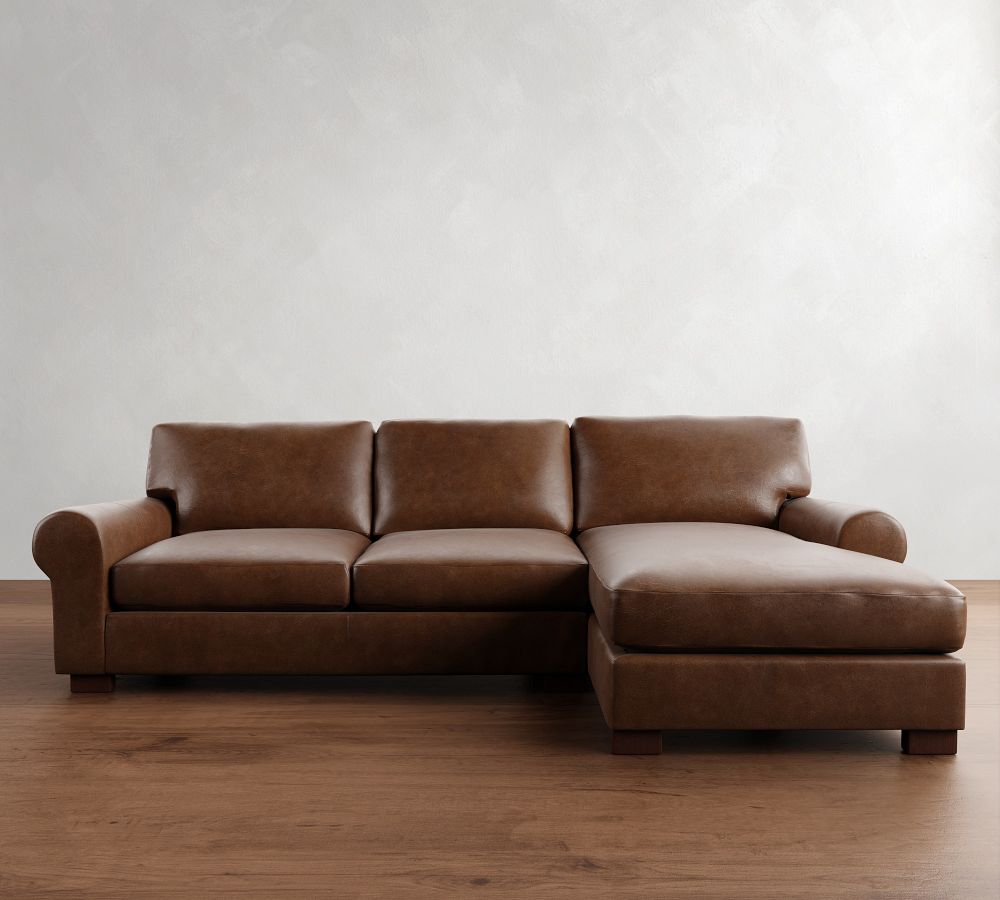 Turner Roll Arm Leather Chaise Sectional (111"–133")
