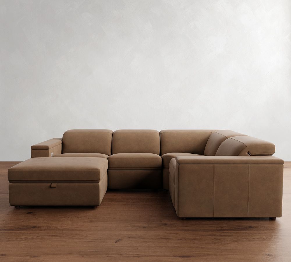 - 116.5" width sectional is made up of:1 Left Arm Recliner, 1 Storage Ottoman, 1 Wedge, 1 Armless Reclining Chair and 1 Right-Arm Recliner.