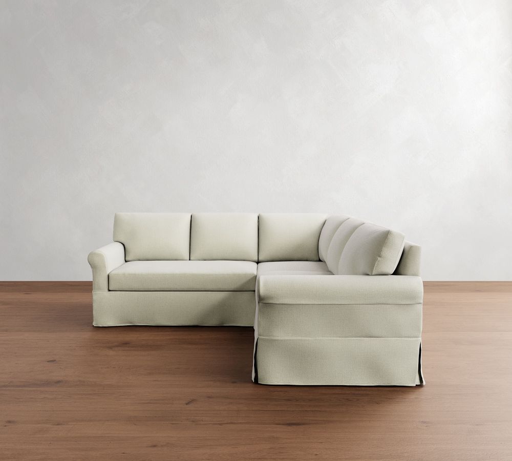 York Roll Arm Slipcovered 3-Piece L-Shaped Sectional (93")