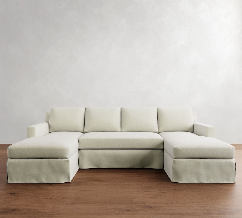 York Square Arm Slipcovered Double Chaise Sectional (107"–127")