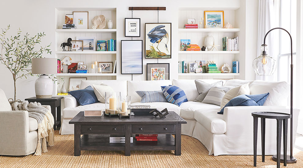PB Air® Roll Arm Slipcovered Sectional