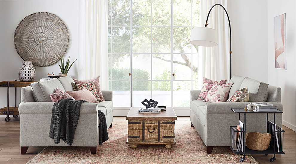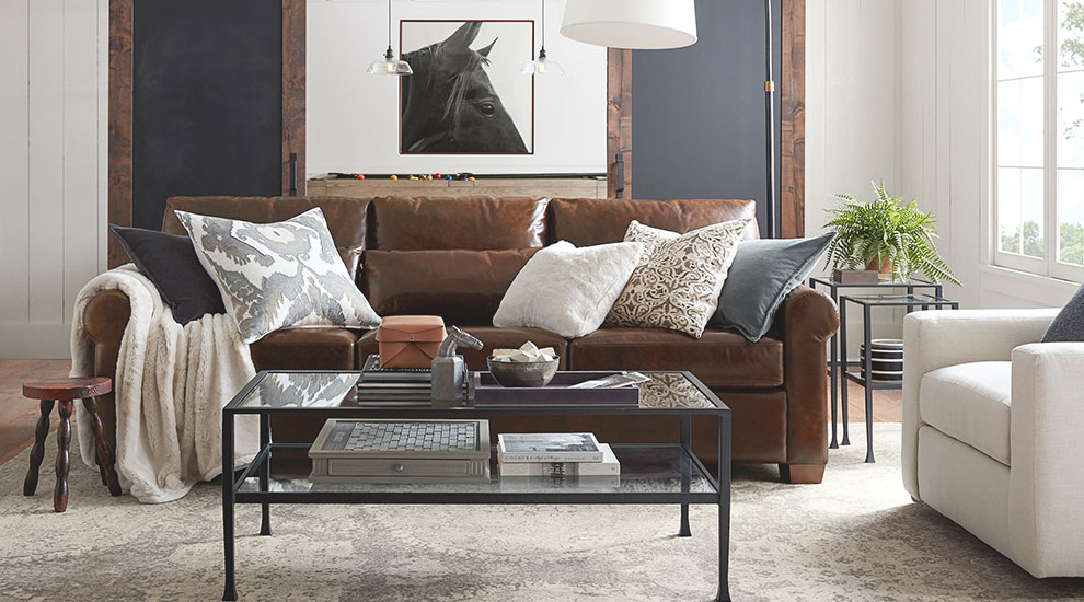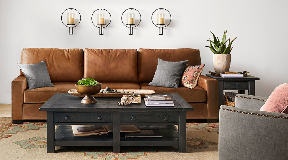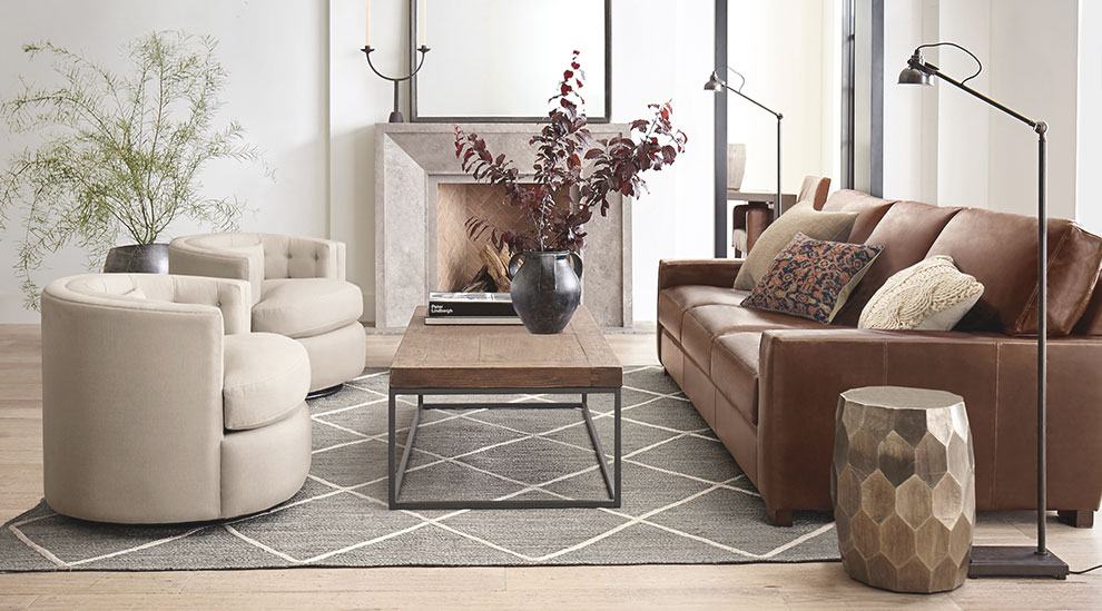 Our artisan-crafted upholstery is customizable in over 100 fabrics and 20 leather options.