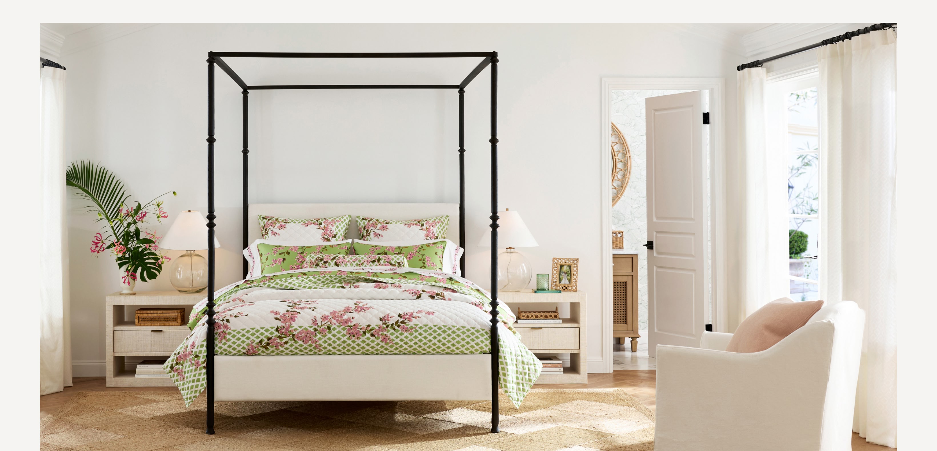 - Monique Lhuillier bedding in cotton, linen, and percale fabrics.