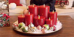 Holiday Decorating 1, 2, 3! A Pottery Barn stylist shows how to create a centerpiece with garland, hurricanes and ornaments.