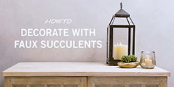 Decorating with faux succulents is as easy as 1-2-3! Simply grab a vessel like a bowl, add filler and arrange your faux succulents to your liking.