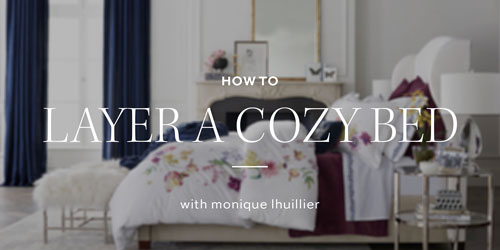 Learn how bridal and fashion designer Monique Lhuillier layers a cozy bed for Fall, using bedding from her new Fall 2018 collection. Rich in tone and high in style, a striking floral